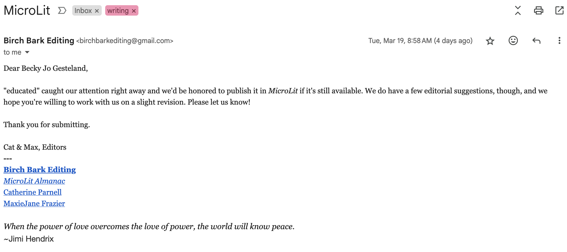 Review your output from last week and pick the story that has the most “heat” for you. Can you distill that entire story down to its essence and write it as a 6-word story? Then, expand it to 100 words: what are the most important elements and ideas to incorporate? Finally, try to do a sprint to 500 words (or more if you’re feeling ambitious).
